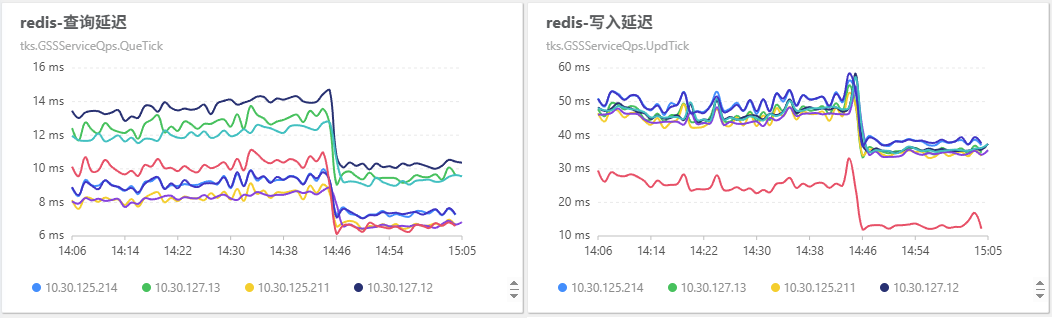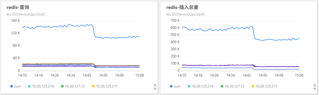 his 集群的 redis 查询总量从 140k 下降到 100k/min,写入总量从 600k 下降到 450k/min。