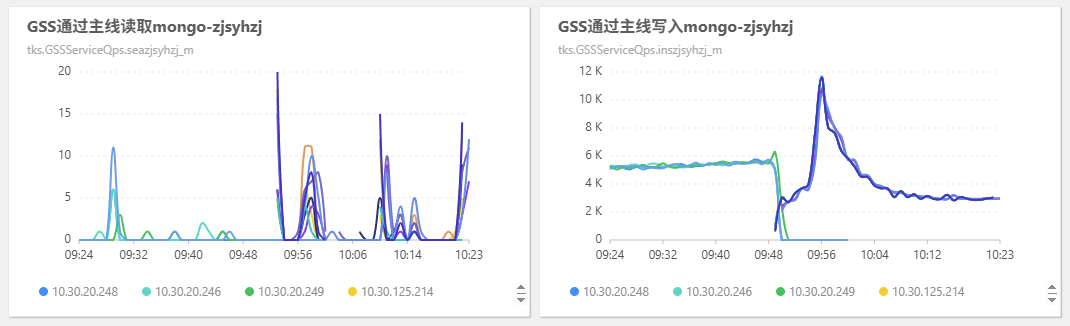 his 集群开始大量向 mongo 读写: