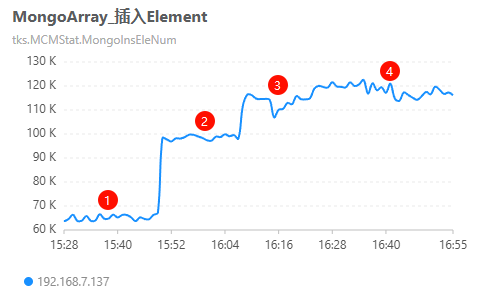 | Mongo-CPU使用率(%) | 42~44.9 | 52.4~57.3 | 53.5~63.2 | 59.7~66.1 |
