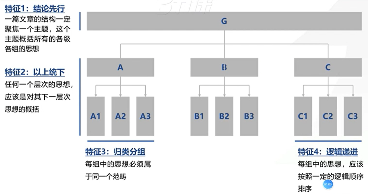 一步一步拆解论证,上一主题是对下一层的佐证概括,下一层佐证是对上一层主题的概括,即而形成金字塔结构。