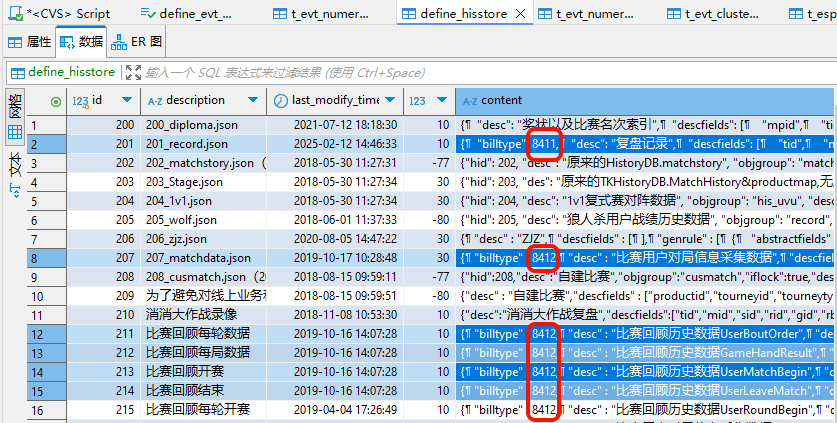 筛选条件:billtype = 8412 加日志类型在上述列表中