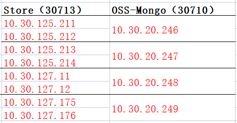 - 第一阶段:分批将所有 Store(共8台)指向 10.30.20.246 上的 OSS-Mongo,也就是由 2:1 升到 8:1;