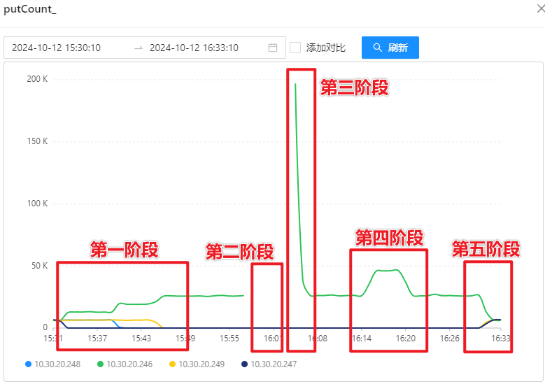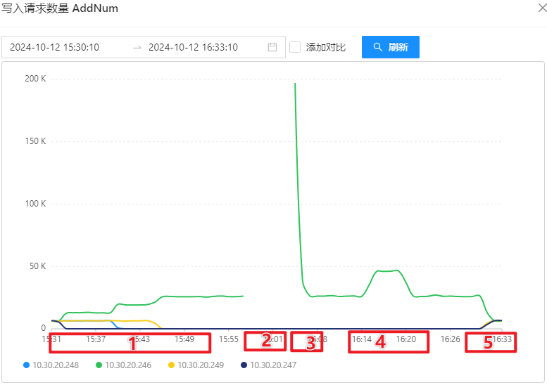 压测过程可以通过写入请求量体现,如下图所示: