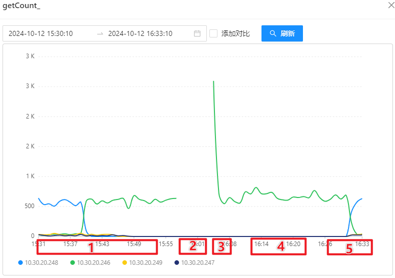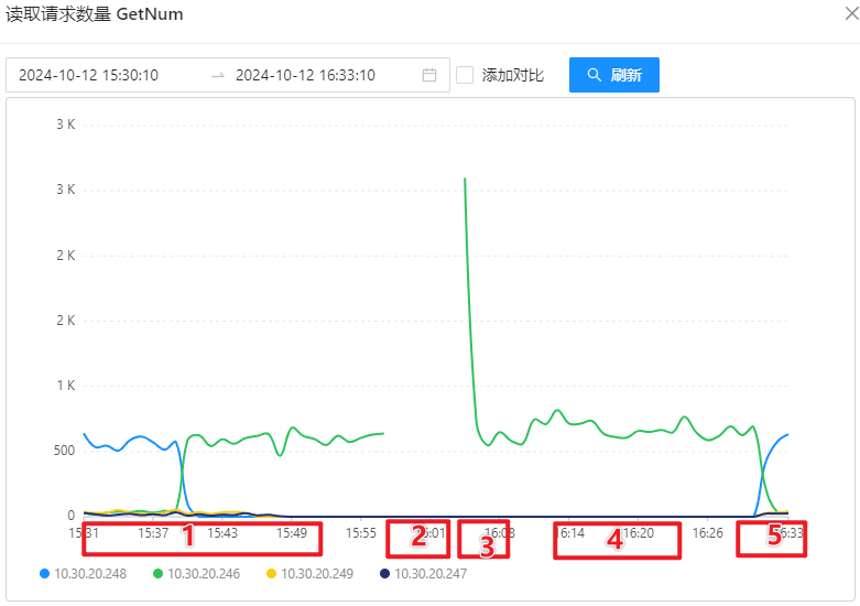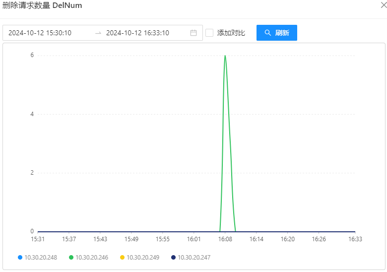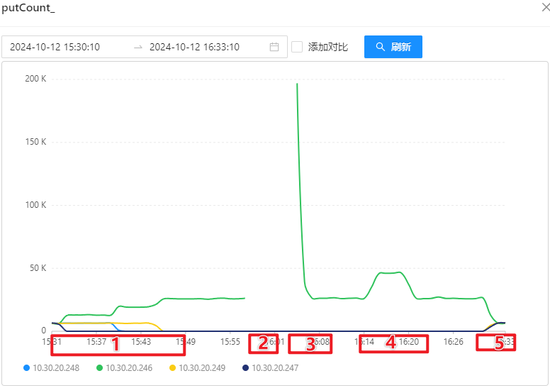 - 第三阶段:启动 10.30.20.246 上的 OSS-Mongo,此时所有 8 台 Store 会同时将刚刚囤积的“待恢复消息”同时发送给 10.30.20.246 上的 OSS-Mongo,OSS-Mongo 会在刚启动的一瞬间收到大量的请求;