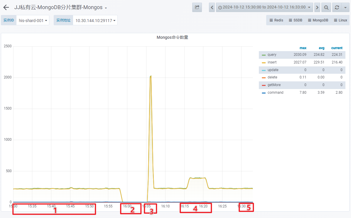 - Mongos 命令失败数量在上述时间段内均为 0。