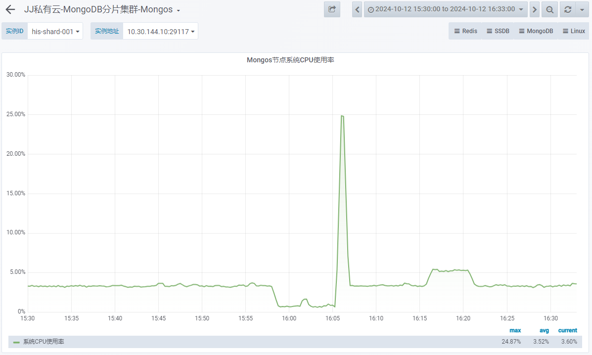 - Mongos 系统 CPU 使用率