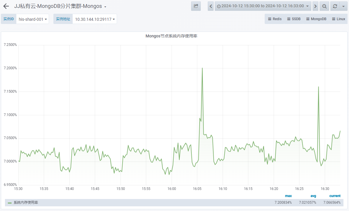 - Mongos 系统内存使用率
